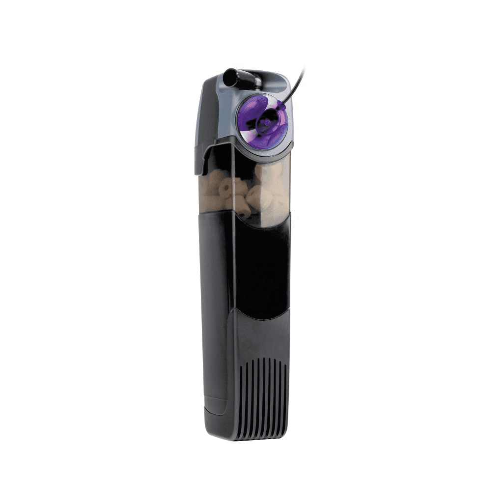 AQUAEL UNIFILTER UV is designed for the cleaning and aeration of aquarium water. Apart from efficient water filtration, the device sterilises water using ultraviolet LEDs. This prevents the growth of floating algae, protozoa and bacteria, which results in increased water clarity and a healthier environment for fish. UV LEDs can be switched on and off independently of the filter. UNIFILTER UV is easy to operate. Its performance can be adjusted by means of the dial formed by the rotor dome. The direction of water outflow can be changed by up to 90°. The larger models, UNIFILTER UV 500, 750 and 1000, are equipped with a ceramic rotor axis for even quieter operation and enhanced durability. The specially designed filter media chamber prevents water from flowing out of the filter and into the fish tank during water changes or when the filter is removed from the aquarium e.g. in order to change the water or wash the sponge. To facilitate the maintenance of UNIFILTER UV, we provide two separate sponge cartridges, which can be removed and cleaned in turns. In this way, colonies of nitrifying bacteria, essential for nitrogen processes, are protected. In order to provide uninterrupted filtration, it is recommended that sponge filter cartridges should be cleaned in turns and independently of each other.