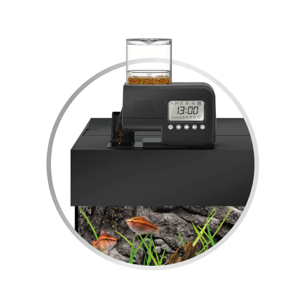 “The SmartFeed 2.0 is the premium automatic feeder for granulate and flake feed with an extended range of functions. Using the right mounting support, it can be fitted particularly simply and quickly to any JUWEL aquarium.